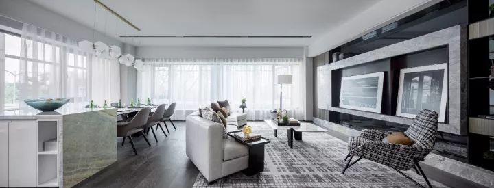 設(shè)計(jì)師用現(xiàn)代簡約設(shè)計(jì)手法來鋪陳空間,大面的落地窗擁有極佳的視野,黑白灰色調(diào)的運(yùn)用賦予了空間獨(dú)特的雅韻和品質(zhì)感。經(jīng)典的格紋透露出些許英倫情調(diào)。